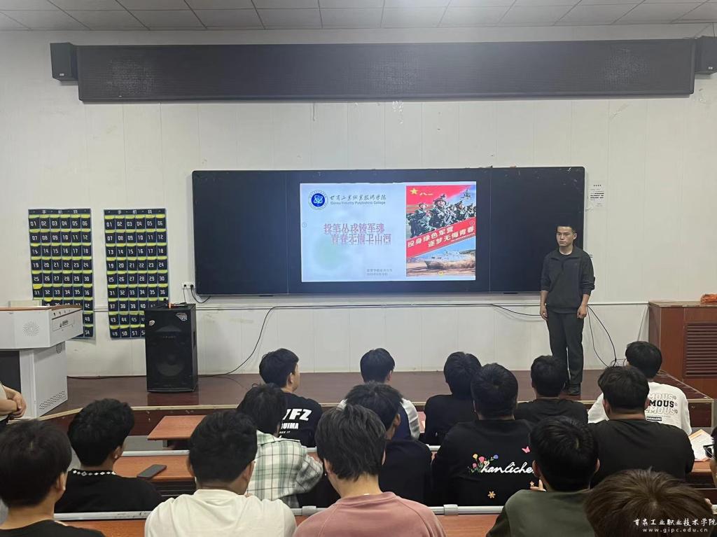 随后,经管学院党总支副书记卢继恩从大学生入伍流程、应征入伍基本条件、国家出台的一系列优惠政策等方面给学生作报告,强调“参军是青年锤炼品格、实现价值的重要途径”,鼓励学子将个人理想融入强国强军伟业。