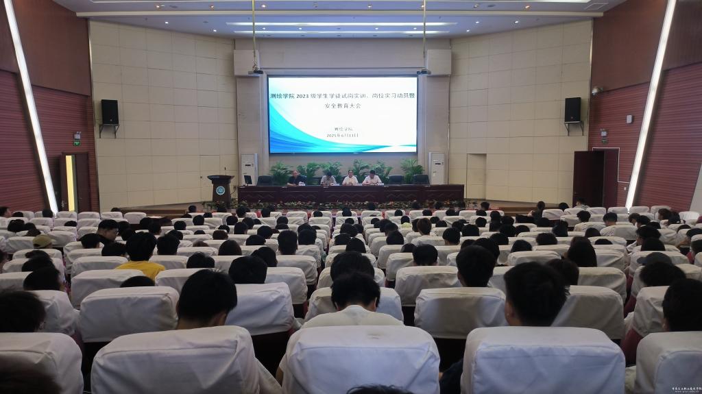 为扎实推进学生实习工作,强化学生安全意识,6月13日下午,测绘学院在图书馆智敏报告厅召开2023级学生实习动员大会。学院班子成员、各专业负责人、班主任、实习指导教师及2023级全体在校学生参加。