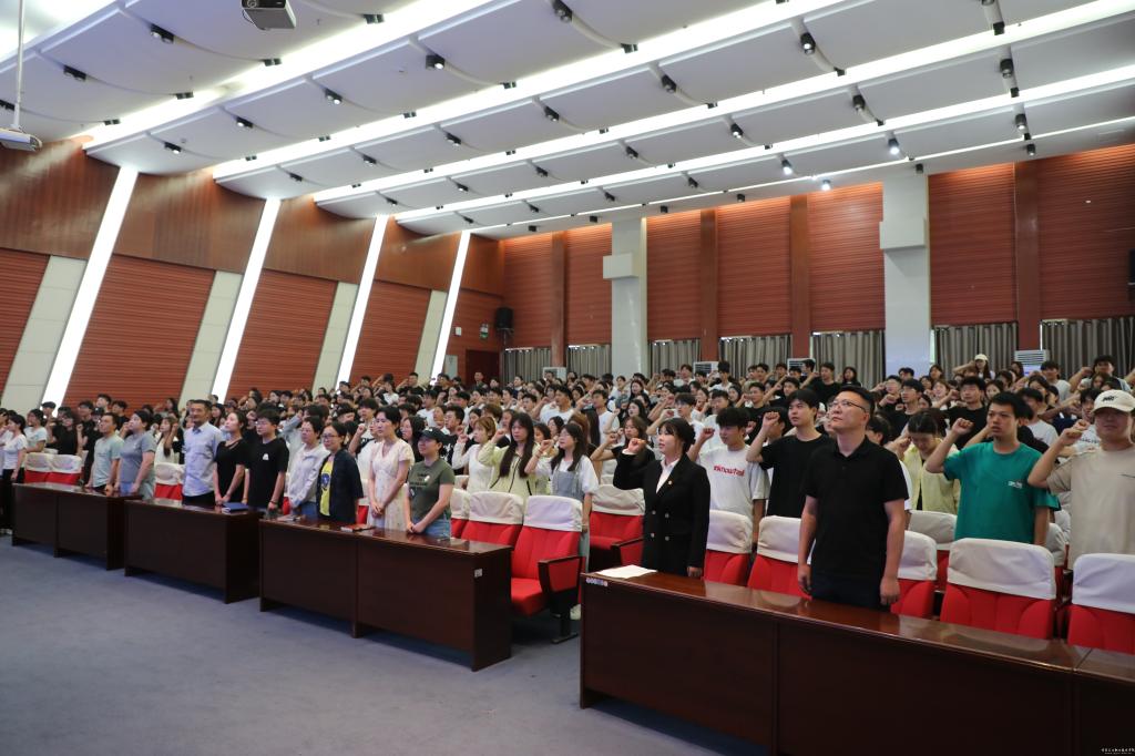 学生代表上台发出“诚信应考”倡议,青年教师带领全体学生进行诚信考试宣誓,以集体承诺强化诚信观念,为考试季注入“诚信力量”。