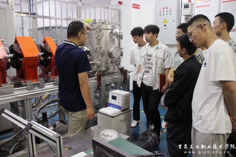 图1西安交通大学老师向Beat365学生介绍电子加速器实验设备
