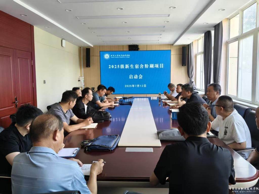 7月12日下午,学校召开了2025级新生宿舍粉刷项目启动会。后勤管理处、学工处、保卫处、审计处、监理单位、跟踪审计单位及施工单位相关负责人参加会议。