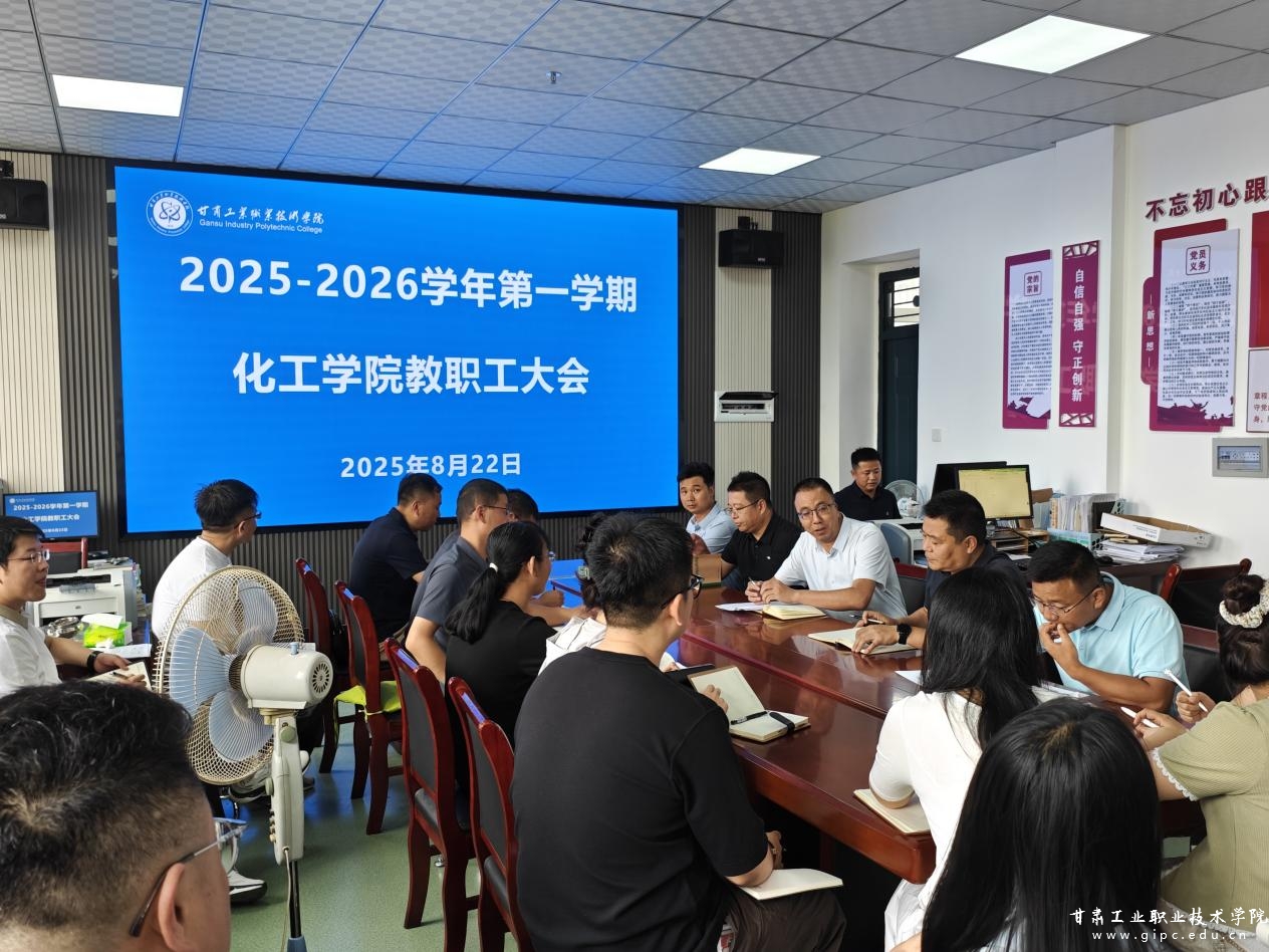 8月22日下午,化工学院在实验楼318会议室召开新学期第一次全体教职工大会,对新学期学院重点工作进行了安排部署。会议由化工学院党总支书记岳强主持,学院全体教职工参加。