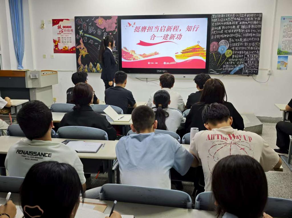 团课伊始,全体新生集中学习了习近平总书记致全国青联十四届全委会和全国学联二十八大的贺信,深刻领会“奋力书写挺膺担当的青春篇章”的时代要求。随后,各团支部围绕校园法治安全教育展开专题学习,内容涵盖电信诈骗、校园贷、学术不端、网络言论合规、实习就业法律风险及知识产权保护等热点问题,帮助新生筑牢法治观念,提升安全防范能力。