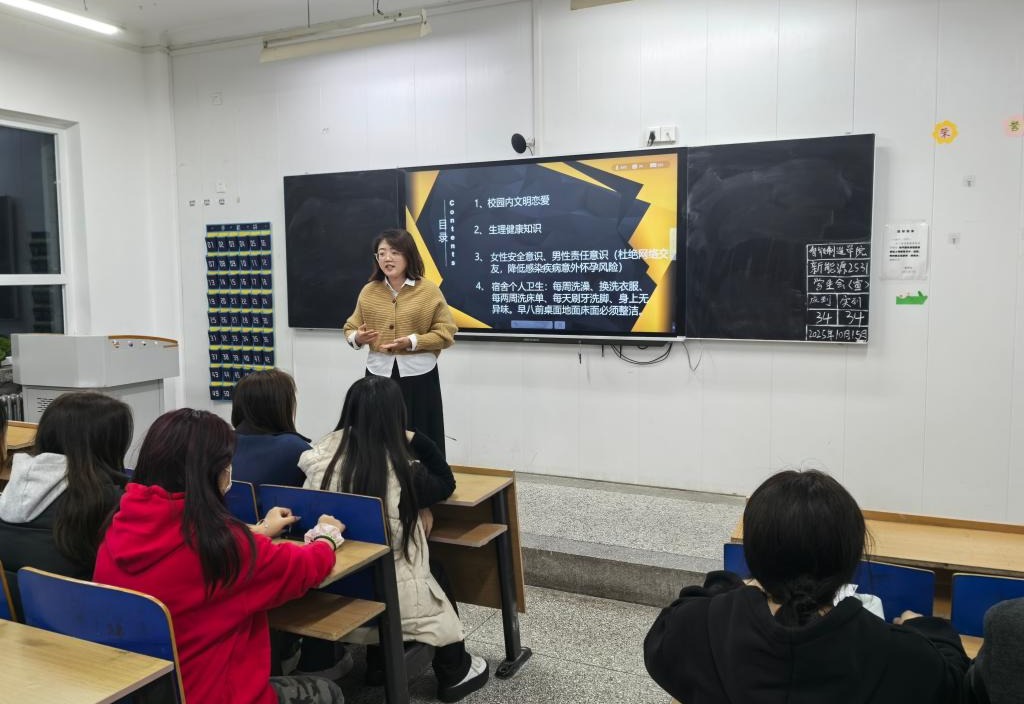 聚焦恋爱观引导,守护情感健康。讲座伊始,班主任从校园内文明恋爱讲起,向女生们阐释了正确的恋爱观,强调恋爱应建立在相互尊重、理解与支持的基础上,避免因冲动或盲目恋爱影响学业与身心健康。同时,班主任还提醒女生在恋爱关系中要保持独立人格,学会辨别不良恋爱行为,遇到情感问题时及时与老师、同学沟通,维护自身情感权益。