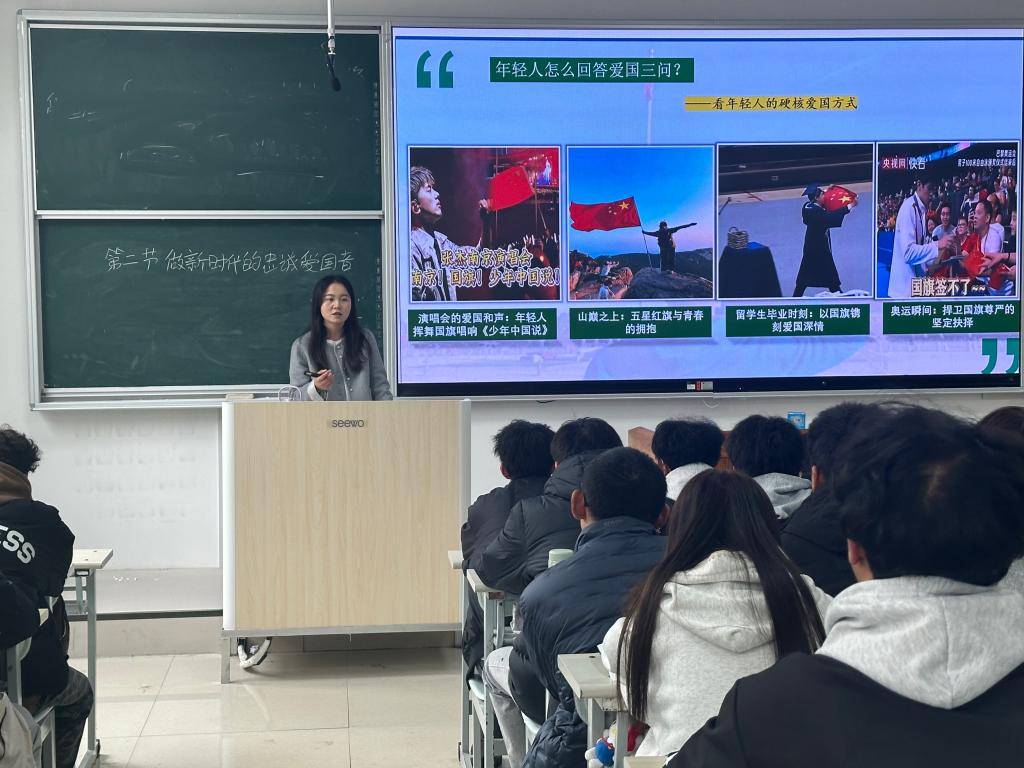活动中,张燎走进冯乙璇老师的课堂,听取了以“做新时代的忠诚爱国者”为主题的教学内容。冯乙璇老师围绕爱国主义的本质,系统阐释了“坚持爱国爱党爱社会主义相统一”的核心要义,从道德、政治、法律等多维度解析爱国主义的内涵,并结合港澳台相关历史背景,深入讲解“一国两制”方针与“九二共识”的重要意义。整堂课逻辑严密、内容充实,重点突出。