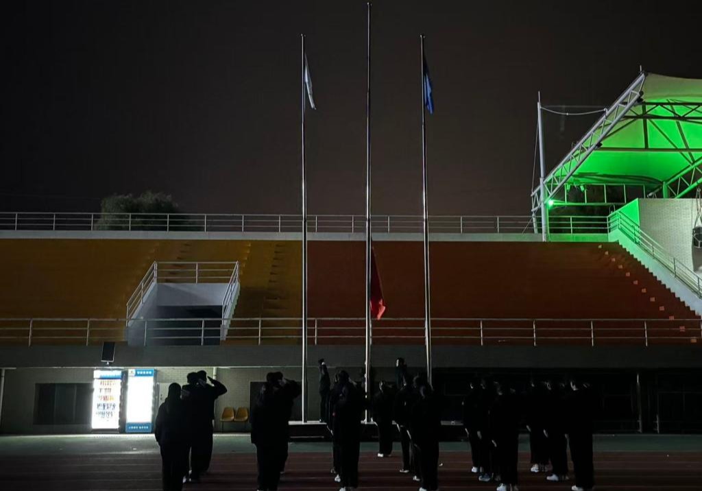 11月10日清晨,建筑学院在学校田径场举行升旗仪式。晨光初绽,全体师生整齐列队,静待庄严时刻的到来。