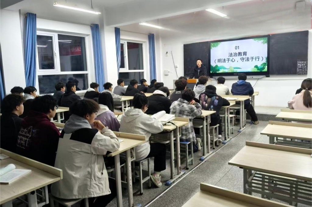 在法治教育主题班会上,辅导员通过典型案例剖析、互动问答等形式,围绕校园贷、网络诈骗、交通安全、知识产权保护等学生密切相关的法律问题展开讲解,引导学生认清违法犯罪的危害,增强法治思维和自我保护意识,自觉做到知法、懂法、守法、用法。