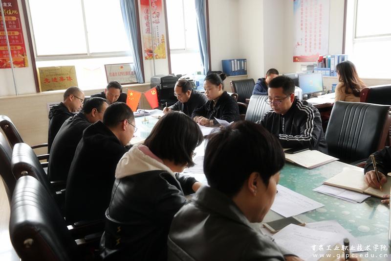 会上,杨声指出,化工学院专题民主生活会会议准备充分、质量较高,体现出化工学院党支部的高度重视和精心组织;自我批评与相互批评过程交流交心、共识共勉,体现了各位党员领导干部的高度政治责任。杨书记同时提出三点意见:1、现在是党内全面从严治党的关键时期,希望化工学院党支部能够保持优秀基层党组织的作风,充分发挥党支部的榜样作用做出表率,进一步完善支部活动形式;2、党员教师科研、教研方向还不够明确,化工学院党支部要为学院培养社会、企业需要的应用型人才提供坚强的服务与保障;3、职业教育正处在改革创新的重要阶段,职业教育要脱离本科教育、教学的模式,要以全新的教学模式应对国家对大国工匠的需求。化工学院需要在支部领导下,打造一支既是优秀党员、又是优秀教师、又是科研能手的具有奉精神的教师队伍,培养学生在技能大赛上争取更好的成绩,有所突破。