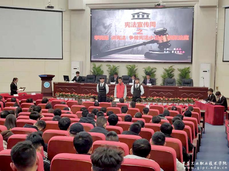 12月1日,学生以“模拟法庭”的形式,向参会青年生动展示了宪法在现实生活中起到的重要作用,也让大家明确认识到《中华人民共和国宪法》是中华人民共和国的根本大法,是治国安邦的总章程,是保持国家统一、民族团结、经济发展、社会进步和长治久安的法律基础,是中国共产党执政兴国、团结带领全国各族人民建设中国特色社会主义的法律保证。