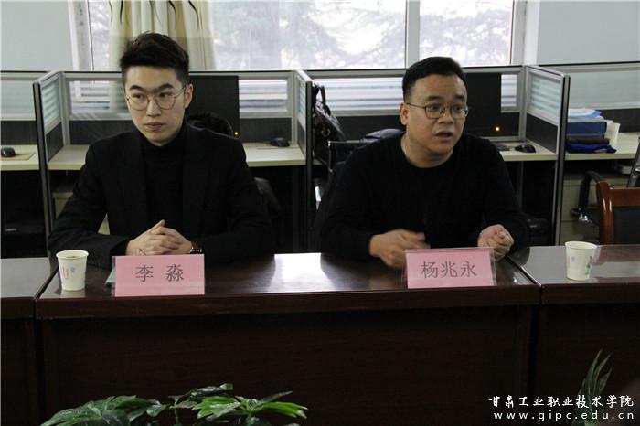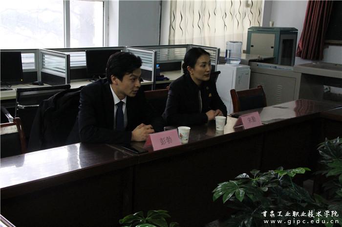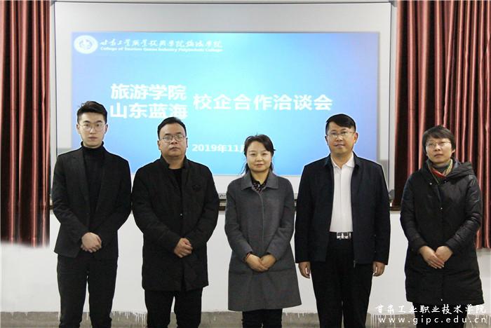 天水宾馆副总经理宋勤、天水宾馆行政办公室主任彭勃,山东蓝海集团人力资源经理杨兆永、山东蓝海集团人力资源部招聘经理李淼分别针对项目企业资质项目协议内容项目实施情况项目监管情况与我院深入交换了意见。最终,与天水宾馆就学生实习实训宾馆员工服务管理能力提升达成了初步意见与山东蓝海集团深度合作及教育扶贫达成了一致意见。旅游学院党支部书记、院长曹瑞琴,旅游学院纪律检查委员、副院长李玉林,办公室主任刘晓丽、酒店管理专业主任王作娟参加洽谈。