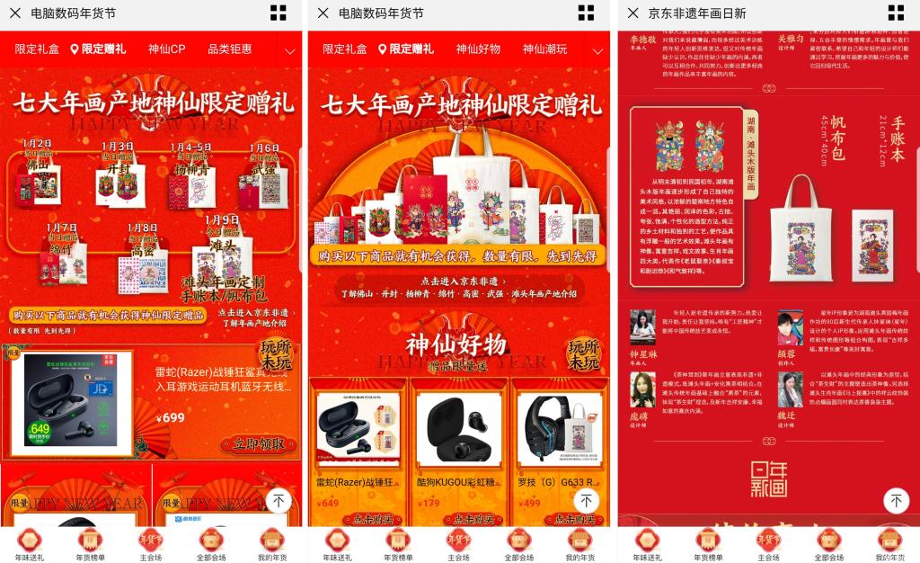 2020年京东数码年货节神仙礼品滩头年画定制《星年IP形象插画》手账本和帆布包