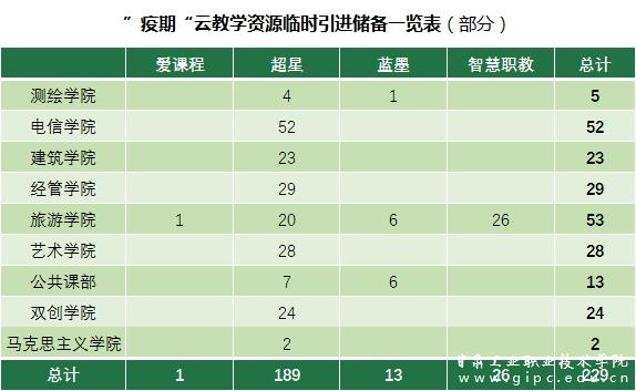 加快教学资源建设,细化教学工作举措。应对疫情防控,教务处紧急对接国内一线网络教学服务机构,聚集主流平台网络教学资源建设。同时发布了《关于在“新冠肺炎”疫情防控时期加快开展在线课程资源建设的通知》(校“疫情防控”第5号公告),为教学一线人员提供了具体可行的在线教学实施方案。2月1日,教务处向各教学部门主要负责人整理公布了超星尔雅/泛雅/学银在线全学科在线课614门、学雅专业课28门、蓝墨云班课配套云教材352部,在线推送了《远程实时互动课堂解决方案》专题培训视频材料。