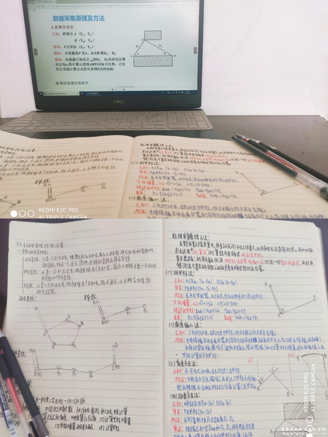 《数字测图》是技能课程,网络在线学习存在很大困难。学生要认真参加在线学习,并对重点知识进行注记,同时在笔记中加入自己的思考和疑问,扎实地掌握理论知识。通过观看实操视频,掌握软件操作流程和重点环节。