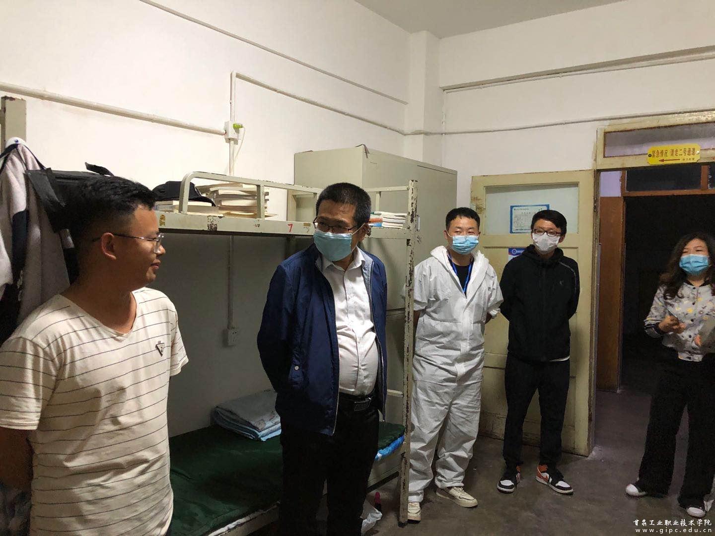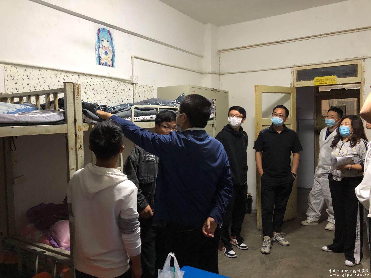 学院领导、班主任、辅导员走进学生公寓和学生亲切交谈,了解学生在家学习及返校后的情况。嘱咐同学们良好的宿舍生活环境是同学们学习和生活的基础,每天要仔细对宿舍消毒,保证通风时间,每天按时上报体温计记录等。