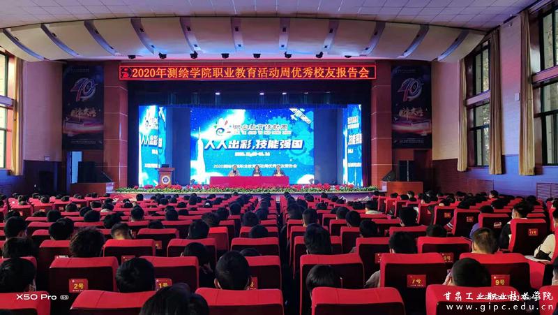 11月11日,测绘学院2020年职业教育活动周之“三美”进校园--优秀校友报告会在大学生活动中心举行。天水三和数码测绘院党总书记、副院长靳娟丽和甘肃正昊测绘工程有限公司总经理张向阳两位优秀校友,为我院500余名师生做专题报告。