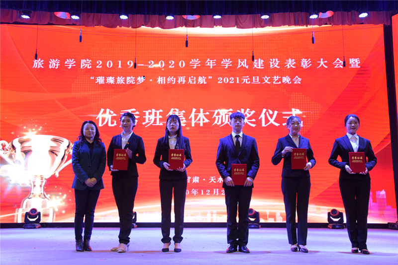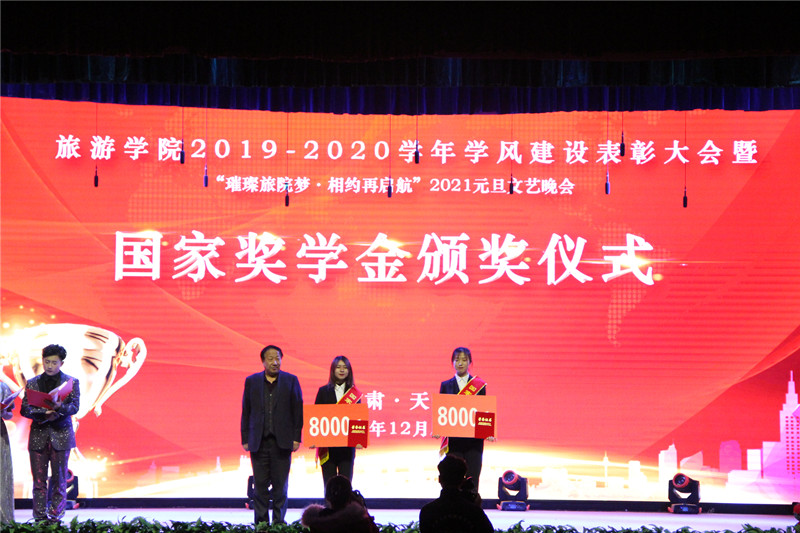 12月25日晚,旅游学院学风建设表彰大会暨“璀璨旅院梦·相约再启航”2021年元旦文艺晚会在大学生活动中心隆重举行。副院长李玉生、组织人事部部长杨建国、宣传统战部部长胡森林、教务处处长何瑛、学工处处长曹惠清、团委书记黄晓慧、旅院学院院长曹瑞琴与800余名师生欢聚一堂。