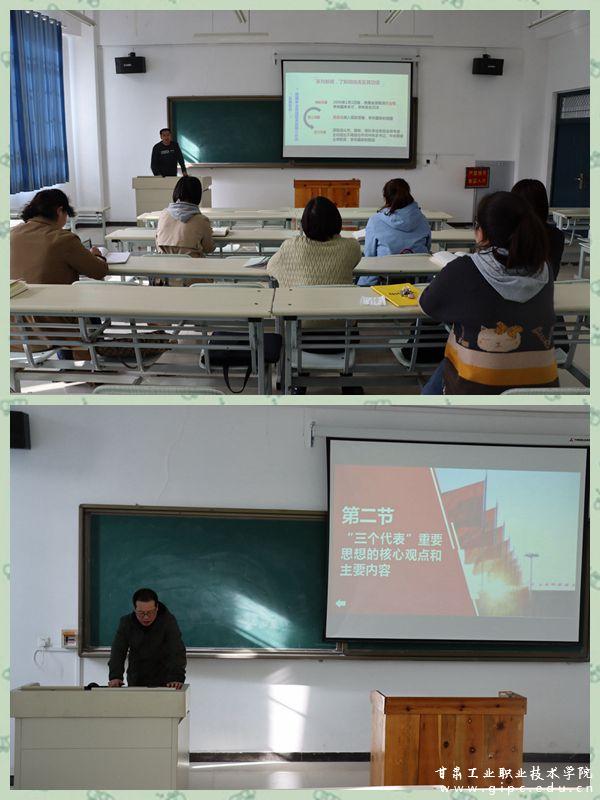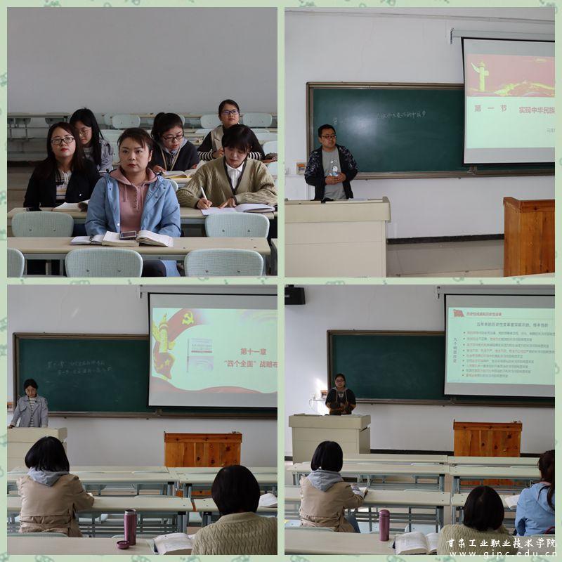 为进一步加强教学管理,提高课堂教学质量和教学水平,帮助新任课教师更好地走上讲台。2021年4月16日下午,马克思主义学院在实训大楼108教室组织开展了新入职教师试讲暨第三次集体备课活动。试讲活动由马克思主义学院副院长李杨主持,马克思主义学院全体思政课教师参加。