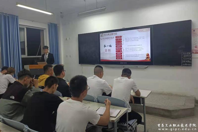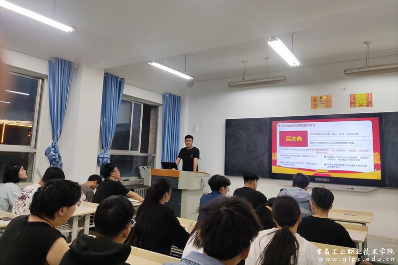 为进一步加强《中华人民共和国民法典》的学习宣传教育,提高全体教师及学生对民法典学习宣传工作的重视,提高民法典普法工作的针对性和实效性。日前,校团委积极组织各二级学院团总支开展“美好生活·民法典相伴”主题团课活动,宣传普及《民法典》,教育广大师生学法懂法、守法用法,更好更有效地维护自身合法权益。