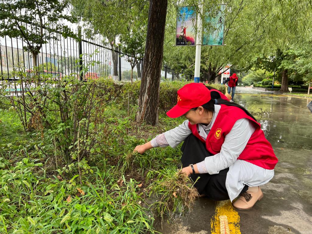 虽然阴雨连绵,但是老师们克服雨天带来的阻扰,发扬不怕苦、不怕累、不怕脏的精神,以高度的责任感和饱满的工作热情全身心的投入到劳动中。