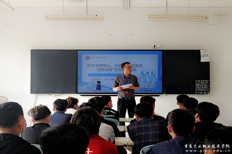 4月26日下午,根据省教育厅统一安排部署和学校疫情防控调度会议精神,电信学院召开“抗击疫情、万众一心构建校园防疫安全堡垒”主题班会,统筹做好 “五一”假期疫情防控工作安排,提高科学精准防控水平,确保广大师生生命健康和校园安全稳定。