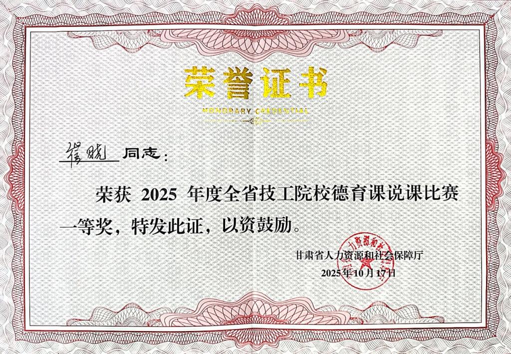 近日,在省人力资源和社会保障厅主办的全省技工院校德育课说课比赛活动中,马克思主义学院教师崔晓凭借扎实的教学功底、创新的教学设计与深刻的德育理念,从众多参赛选手中脱颖而出,最终以总分第一的成绩荣获一等奖。