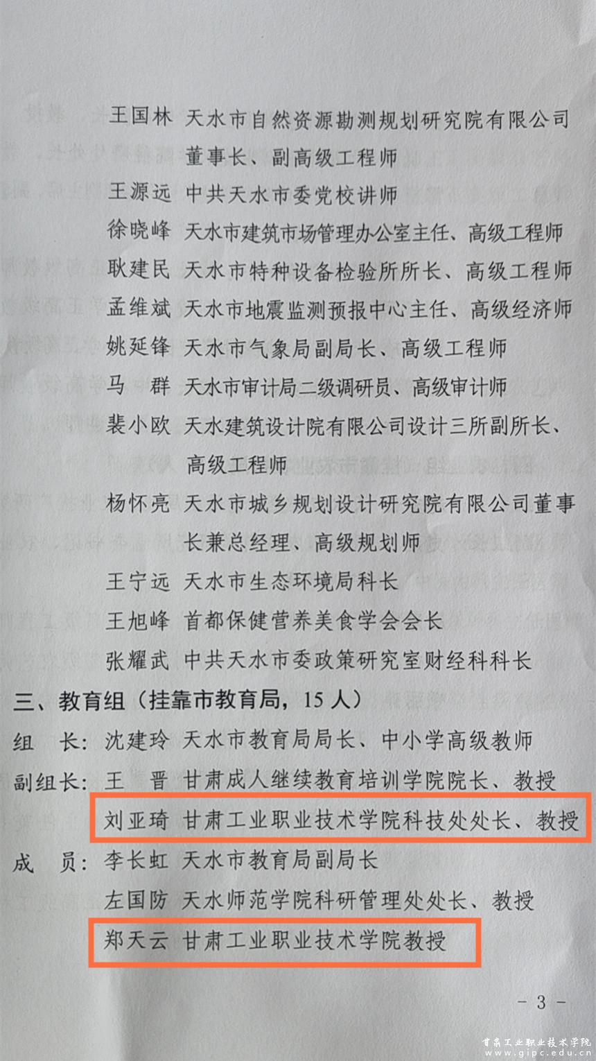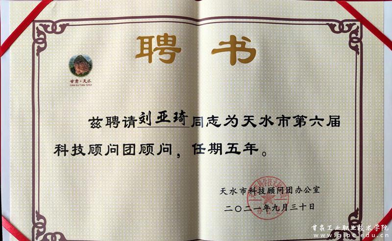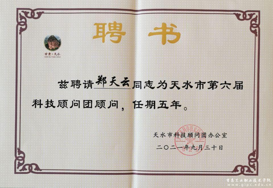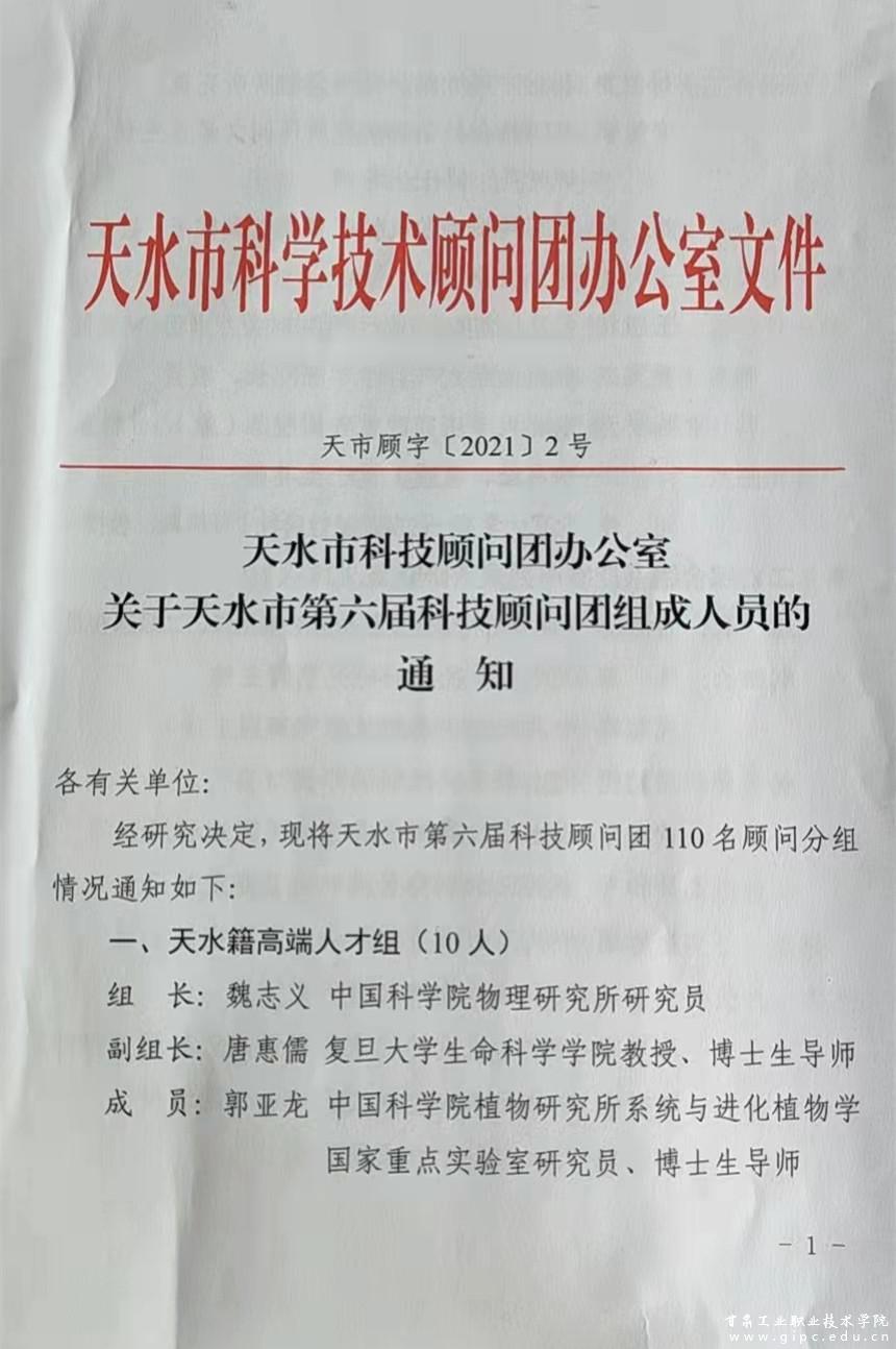 根据天水市科技顾问团办公室《关于天水市第六届科技顾问团组成人员的通知》(天市顾字[2021]2号),Beat365教师刘亚琦、郑天云成为天水市第六届科技顾问团成员。 (供稿/图片:科技处 编辑:杨佳欣 编审:王莹芝)