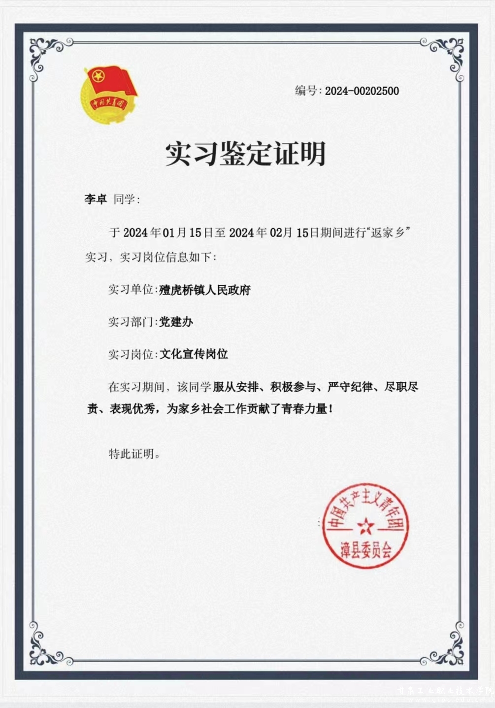 短短一个月的实习,李卓完成了从一个未深入接触社会的青年学生向一名颇有经历的实践人的蜕变。“返家乡”活动于他而言,不再是简单的几个字,而是一段刻骨铭心的经历,让他在历经社会百态的过程中,砥砺奋进、茁壮成长,为他未来的人生之路积攒下宝贵的财富,更为家乡的发展添砖加瓦,书写下属于当代大学生的青春华章。