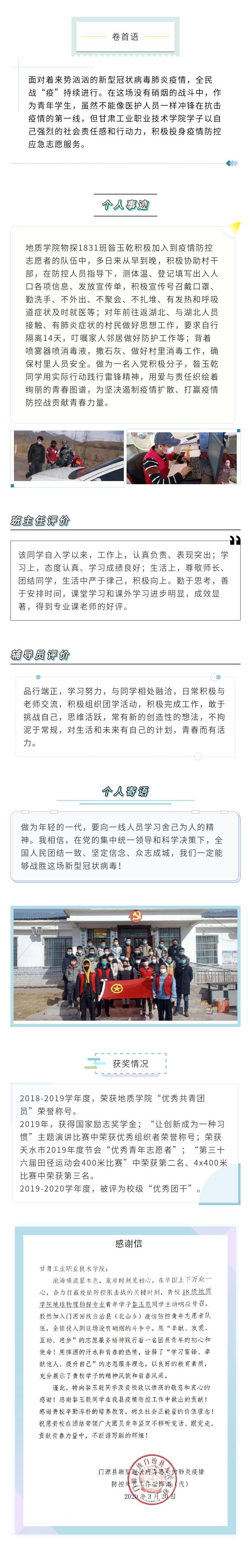 【身边的榜样】我在“疫”线 守护家乡 ——地质学院昝玉乾