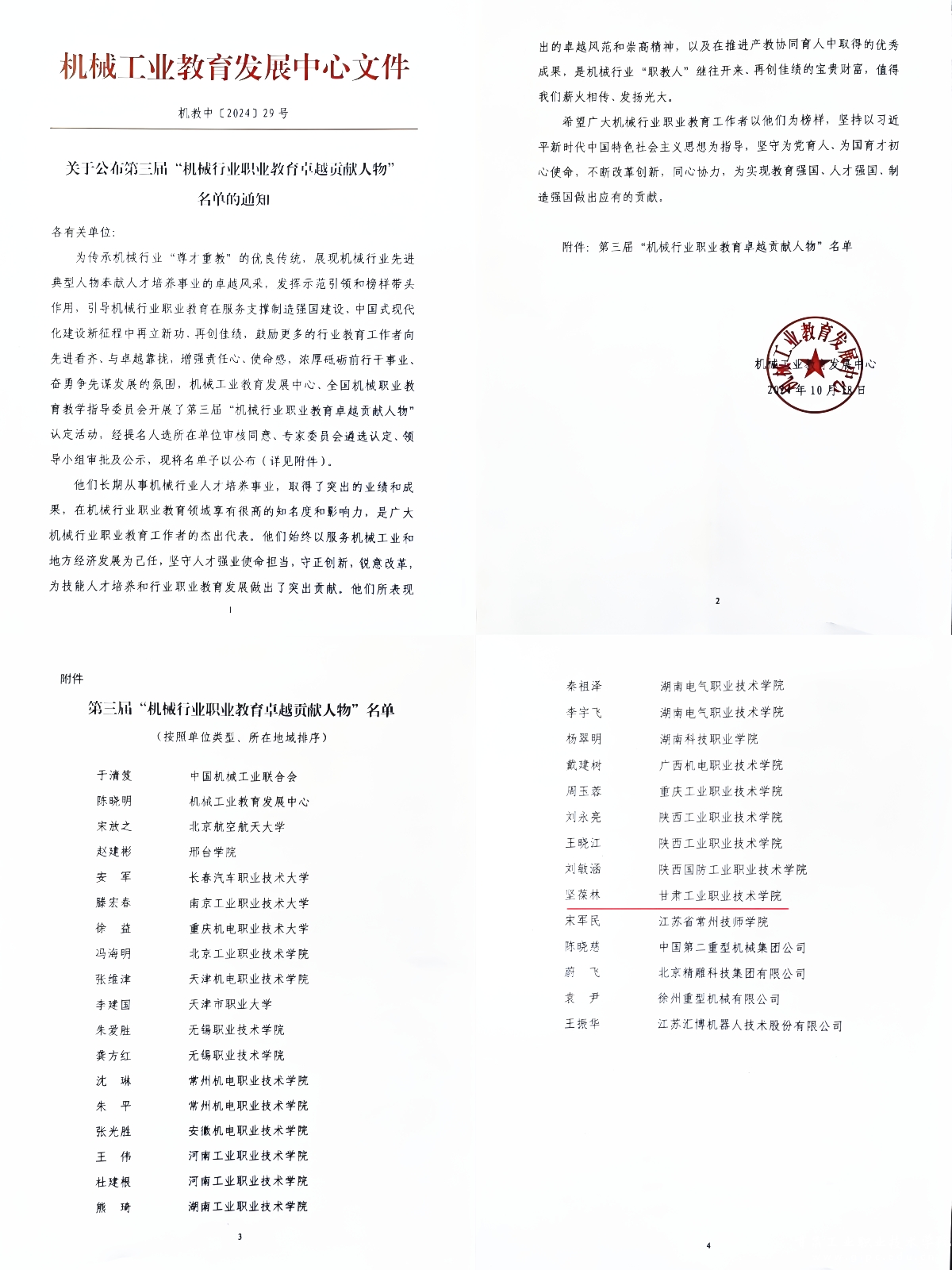 喜报!Beat365党委书记坚葆林荣获机械行业职业教育卓越贡献人物