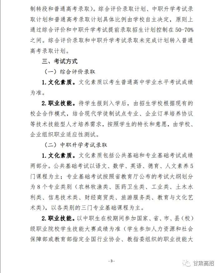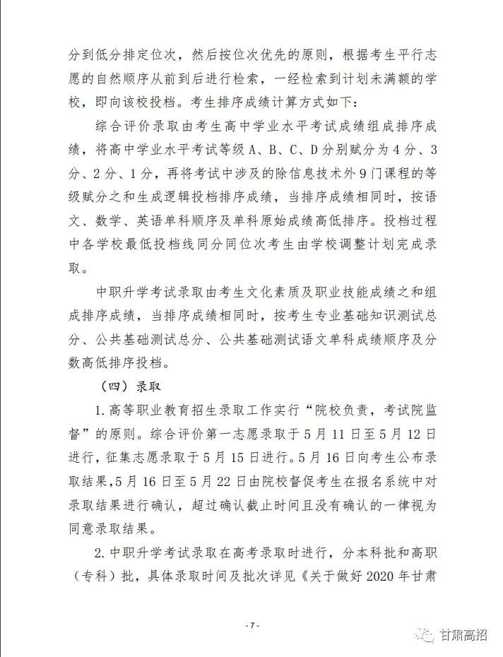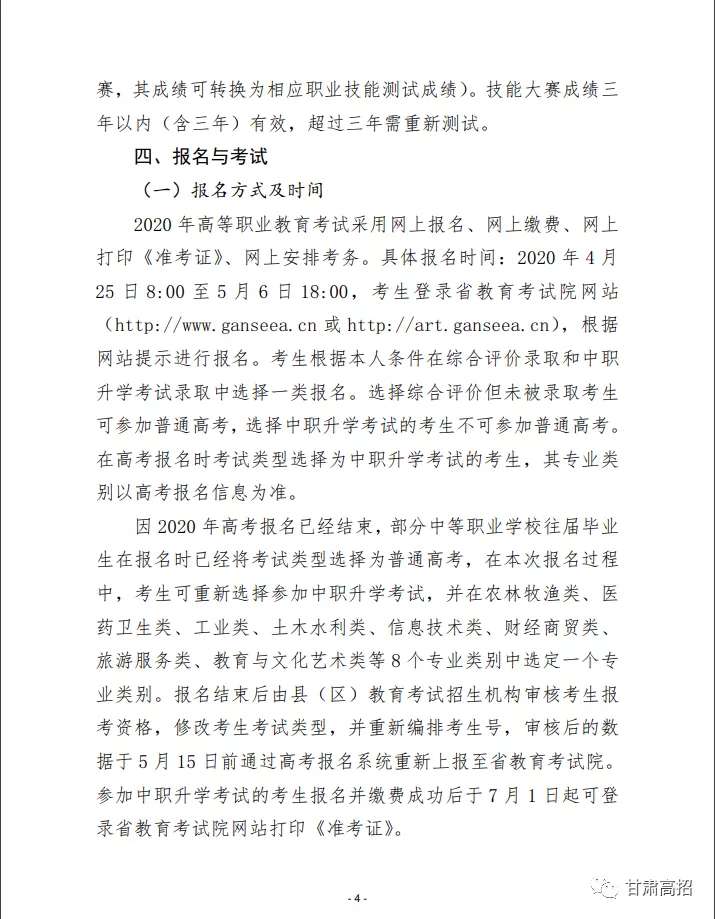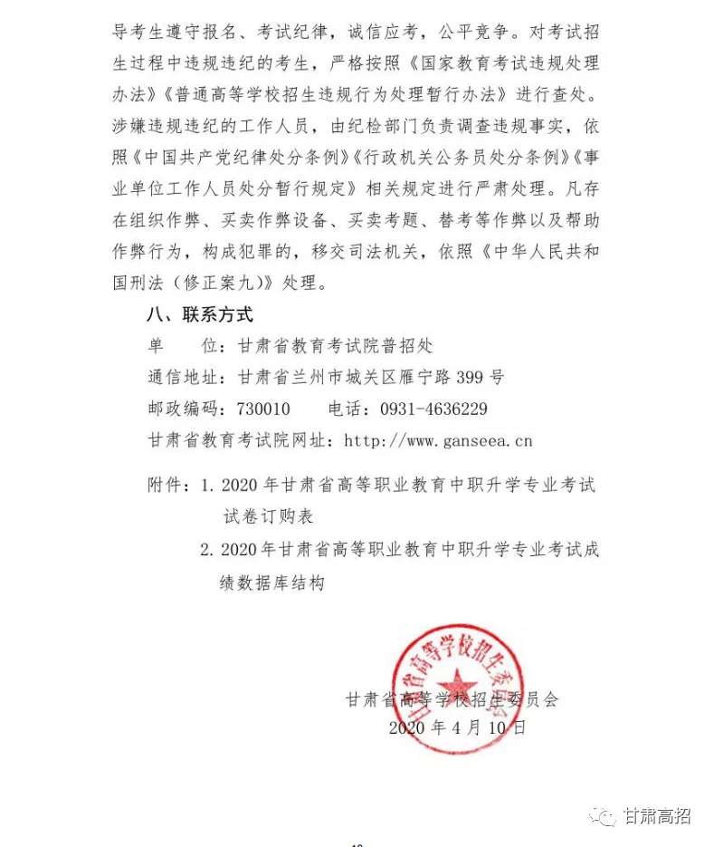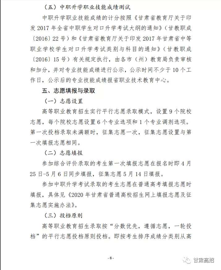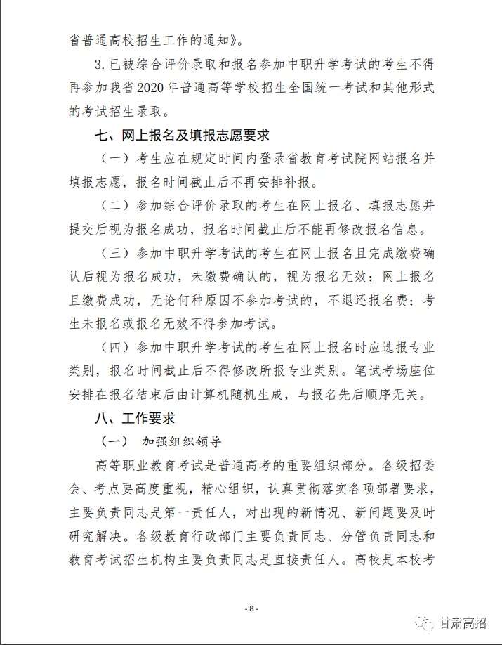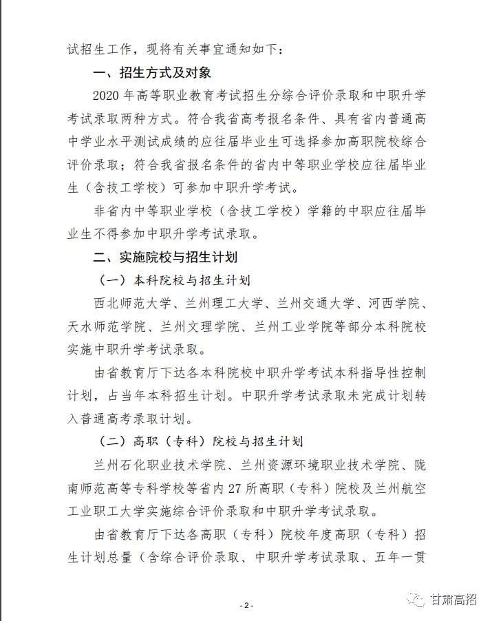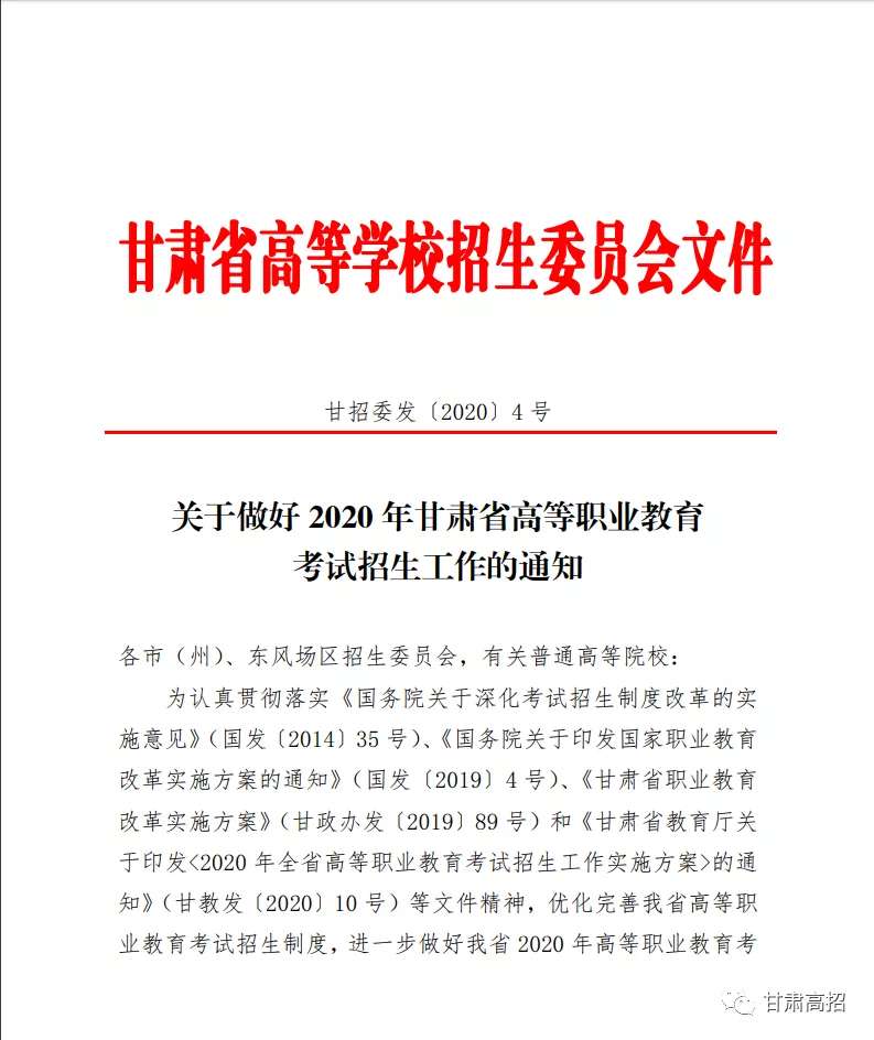 关于做好2020年甘肃省高等职业教育考试招生工作的通知
