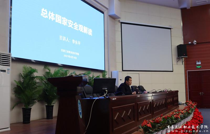 李永平从国家地理、历史沿革、文化传承三个切入点和国家经济安全、资源安全等方面的大量真实案例对总体国家安全观做了精彩讲解。认真学习领会了习近平总书记关于总体国家安全观和国家安全工作的重要论述,以及坚持总体国家安全观、维护国家安全的丰富内涵和重大意义;大力宣传宪法规定的关于公民维护祖国的安全、荣誉和利益的基本义务,不断增强了全体学生的国家安全意识;同时对国家安全法、反间谍法、反恐怖主义法、核安全法、网络安全法等涉国家安全的法律进行了重点解释,切实增强了全校学生国家安全意识和法治意识。